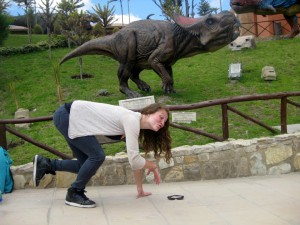 Na het dagje in Potosí zijn Eef en ik doorgereden naar Sucre. Ook wel ‘La Ciudad Blanca' genoemd, oftewel: De Witte Stad. En dat klopt inderdaad deels, al had ik het wel nóg witter verwacht. Niet dat het ook maar iets uitmaakte qua mooiheid van de stad, want het is zo’n leuk en mooi stadje! Ontzettend schattig, veel groen en leuke parkjes. Wat een heerlijk stadje om een weekendje te vertoeven! Zoals Conny mij al had verteld is het wel echt een stadje om lekker te relaxen, maar dat is niet erg, want dat kunnen Eef en ik als de besten! :) We hebben heerlijk gechilld in parkjes, rond gelopen door het stadje, een textielmuseumpje bezocht, genoten van het uitzicht en in het zonnetje gezeten voor een dicht kasteel.. Helaas, omdat het Pasen was was er wel érg veel dicht! Geen kerkje van binnen gezien, terwijl Sucre daar toch wel bekend om staat volgens mij.. Maar ach, het maakte ook niks uit! Zonder kerkjes en kasteel was het nog steeds een erg chill weekend en de belangrijkste attractie voor mij was gelukkig wel open! Die hebben we dan ook zeker bezocht: het dinosauruspark! Op m'n 7e ben ik hier geweest met m’n papa en mama en volgens mij kon ik het nog herinneren! Al weet ik niet of het van foto’s is of van mijn eigen herinneringen.. haha. Maar ik vond het super om er weer te zijn! Het belangrijkste in het dinopark zijn de dinosaurusvoetsporen. 13 jaar geleden was er nog helemaal geen park, alleen de voetsporen, maar nu was er dus een heel park gebouwd! Allemaal levensgrote dino’s en veel informatie. Heel leuk om door het dinosaurustijdperk te lopen! Eef en ik hebben erg genoten, óók van de zon die overvloedig scheen in Sucre! :)