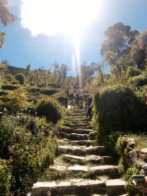 Kijk naar de foto’s en je ziet hoe verschrikkelijk mooi deze twee dagen waren! Echt ongelofelijk! Je kijkt je ogen uit bij het Titicacameer! Helaas werd dit je niet zomaar voorgeschoteld, je moest er nog wel aardig wat voor doen.. ;) Libia en ik kwamen na een busreis van 3 uur aan in Copacabana, het beroemde stadje aan het Titicacameer. Hier hebben we een boot gepakt en zijn we in 1,5 uur over het Titicacameer naar Isla del Sol gevaren. Wat een heerlijke tocht was dat! Super mooi! Eenmaal aangekomen op Isla del Sol begon het echte werk.. We kwamen aan op een strandje van zo’n 10 bij 10 en de enige weg die er was waren trappen, trappen, trappen en nog meer trappen, stijl omhoog! We konden niks anders, dus we zijn de strijd aangegaan! Ik was me toch bezweet toen ik eenmaal bovenaan kwam, maar het was alle moeite zeker weten méér dan waard! Wát een uitzicht! Ongelofelijk! Onder het genot van een drankje en een totaal geweldig uitzicht hebben we heerlijk uitgerust. Wat een fijn weekendje!